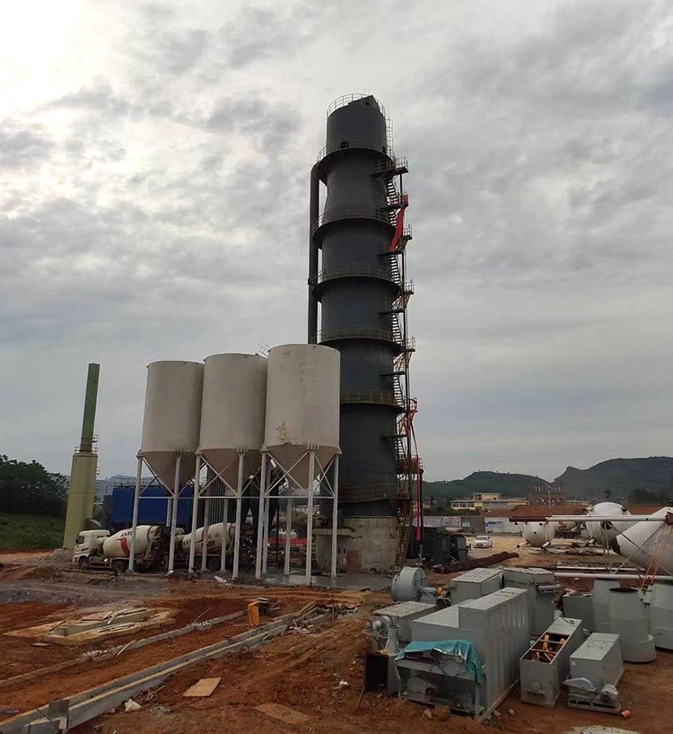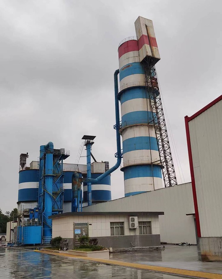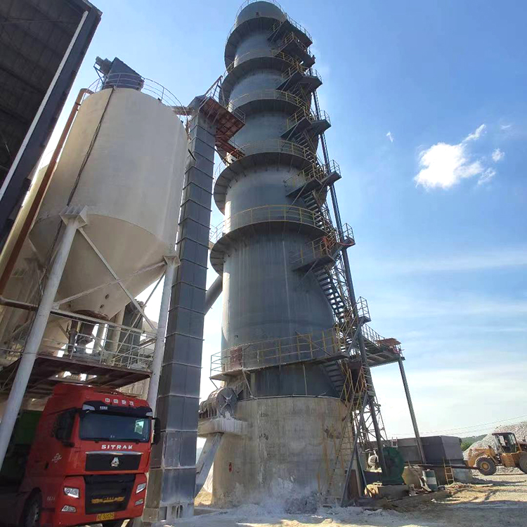 助燃空氣由羅茨風機從爐體下部吹入爐內,克服料粒阻力從下部上升至爐頂,在除塵引風機的吸引下,煙氣通過管道輸送到除塵器進行除塵。由於引風機的作用,使窯內料麵上方形成微負壓區(-10Pa左右)。這個微負壓保證了爐內氣流順暢,非常有利於煆燒帶石灰石進行分解,引風機將全部煙氣引進除塵器淨化,而後從煙囪達標排放到大氣中。